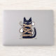 Add some feline mischief to your collection with this adorable cut sticker featuring a grumpy chibi black cat hilariously tangled in colourful yarn. With its pouty expression, tiny body, and kawaii style, this design combines humour and charm in one delightful package. Perfect for decorating laptops, water bottles, notebooks, or any surface needing a touch of personality, this sticker is ideal for cat lovers, anime fans, and those who appreciate cute, whimsical designs!