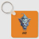 A grumpy looking goblin, frontside view, created with AI art, with the word "Boo" on the front of the keychain. You can easily replace this word by a word of your choice. You can as well change the colour of the background.