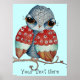 This little cute whimsical owl has some attitude issues as you can see, but she is soooo cute. In blue, red and green with beautiful patterns she is adorable. Text, fonts and font colours are fully customisable. Have fun! From my original painting ink and watercolor on paper. A cute and original idea for a small gift for a child. You can move the image around and change the background colour if you like. To change the background colour click on the "customise it" button then "edit"
