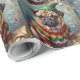 Grumpy Pug Dog in Elf Hat Funny Christmas Art Wrapping Paper