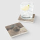 The coasters are gorgeous, a quality feel and heavy weight. They look like a precious archeological find. A rustic stone juxtaposed with a modern floral black and white print. I like the way the print goes slightly imperfect on the cut stone edges giving them a kind-of natural beauty.