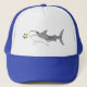 Hat with a grumpy tiger shark and a cute yellow fish with blue fins. The design is customizable.
