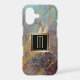This unique phone case combines hipster grunge with classy metallic gold. The background has various colors mixed together, including aqua blue, violet purple, and violet red. The faux gold metal runs diagonally across the surface. At the center is your monogram in gold on a black square banner that is double lined in gold. *Please note - the metallic look is simulated, and the case does not contain metallic paint, but only the image.