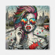 Unique ai art depicting a beautiful modern woman with pink and blue hair, sunglasses with a reflection of the city, urban background post-apocalyptic vibes.