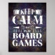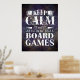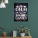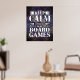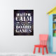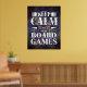 Game on with this cool poster for game room decor! This custom gaming poster features "keep calm and play board games" quote in mixed typography with purple grunge background. Many poster sizes are available, with additional hanging options.