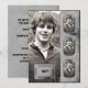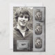 This cool and stylish graduation announcement is a modern twist on a classic look. The background is a grunge look grey parchment with a black border. A large photo goes on the left side and on the right are 3 mini frames for smaller photos. Your text goes on the back. This ensemble has Invitations, Thank You cards, Return Address labels, Postage, Wine Labels (for sparkling juice), Binder, and a Poster perfect for getting those autographs!