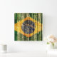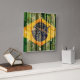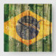 Grunge Brazilian flag on rustic wood background Square Wall Clock