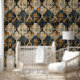 Textured damask wallpaper with a grunge-inspired royal look. Solutions for the interior decor.