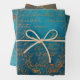 Antique distressed grunge style gift wrap in accents of copper and teal.