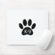 A cute cartoon style dog paw print and text with grunge and distressed effect applied to image. Custom mouse pads with K9 theme. Gift idea.