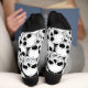 Creepy black and white Halloween socks patterned with with grunge gothic skeleton skulls on black