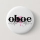 Fun music button for oboists has grunge look design in black and pink with OBOE slogan.