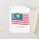Malaysian flag in a grunge style with the name of the country printed below in the local language.