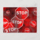 Red textured background illustration featuring a montage of road stop signs. Image available on various gifts and products.