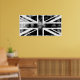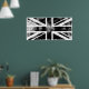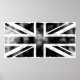 Black and white illustration of a grunge vintage style Union Jack flag of the United Kingdom. Easily customise and choose your own background colour or add text. Image available on various gifts and products.