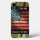 This patriotic Case-Mate Barely There iPad mini Retina case has a khaki green, brown and black style camouflage background pattern with a red, white, and blue grunge American flag over top of it with the words "Home of the free, because of the brave". Thank your favourite soldier or military personnel with a fitting tribute to their service. If you need assistance, email niteowlstudio@gmail.com.