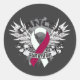 Grunge Winged Ribbon Head Neck Cancer Survivor Classic Round Sticker