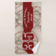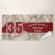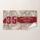 This cool towel for baseball or softball athletes features varied size, realistic, used-looking baseballs turned every which way on a customisable off-white background and prominent jersey number in dark red overlying a bold, full length dark red colour strip, upon which you can also personalise the athlete's name, team name & mascot name - by katz_d_zynes