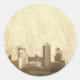 Grungy city background classic round sticker