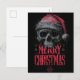 Grungy Gothic Skull Wearing a Distressed Santa Hat Holiday Postcard