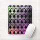 A punk Goth grungy skull pattern in cool multi colours of pink, purple, and green on a mouse pad.