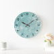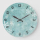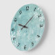 This winter themed clock has a pattern of grungy snowflakes on a blue background.