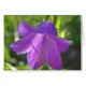 Gray card with purple bell flowers, with the white-orange stamp of the flowers in the chalk. Inscription on the back: have a date. The two inside of the card are blank.