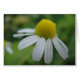 Eine grosse, wild wachsende Kamillenblüte mit schön gemustertem gelben Blütenzentrum und sieben weissen Blütenblättern vor grünem Hintergrund ziert diese Grusskarte. Die Karte ist blanko.