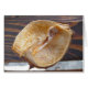Die Innenseite einer hellbraunen Kastanienschale mit einem Stachel ist auf dieser Grusskarte zu sehen. Die Karte ist blanko.