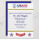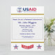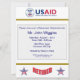 This blue and gold invitation is decorated with the United States Agency for International Development (USAID) logo. The back is decorated with the USAID logo and the word "Retired."