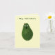 Funny avocado guacamole pregnancy announcement card template featuring an avocado with a face on the front and a cutaway view showing the avocado pit as a sleeping baby on the inside. You can customise the background colour. All the text can be personalised and each graphic element is on a separate layer that can be independently moved or removed. The graphic on the back can easily be replaced with your own image such as an ultrasound with this template.