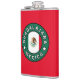 The flask itself is fine. It’s a cheap flask, obviously bought in bulk, however am prepared to overlook that. Given that it is a personalized item, I would have liked to have seen gift boxing instead of the generic packaging. Terrible printing, and/or quality. It’s a cheap, tacky vinyl. It is not cut straight and is also applied in a way that it is overhanging the bottom, causing the glue to catch on items and it will eventually roll and tear, damaging the wrap.