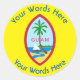 This custom sticker is decorated with the Guam Coat of Arms that can be customised with a choice of words above and below that allow you to personalise it with the name of a person, place, position, etc.