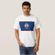 The front of this shirt has a big and bold Guam flag that pokes through to the back side of the shirt that makes it seem that the flag is going through the shirt.