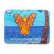 The Beach Angel Painting shows an yellow-orange angel hovering over the ocean. The word "joy" is on a cloud with a heart and has the sun peeking through. The word "peace" is written on the sand beach. A cheerful palm tree sways towards the guardian beach angel. Customise this angel magnet with your own text and images. Make personalised guardian angel magnet gifts!