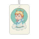 An adorable male guardian angel sending you a prayer. He has blonde hair a gold halo and a white tunic with gold trim. He has little white wings and is standing on a fluffy white cloud.