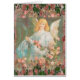 A vintage guardian angel surrounded by soft pink roses.