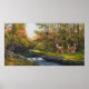 Print Oil painting of deer Buck guarding his female does by river. By David E Paul