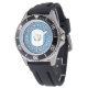 Has heft and feel of expensive stainless steel quartz wrist watches. Solid construction and good looks. Although it had a really top quality rubber strap, I substituted a stainless steel "Shark" style mesh strap, which I think is the most comfortable strap available. Perfect. True colors of original image. Clear, crisp image precisely aligned and spaced.