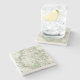 The coasters are gorgeous, a quality feel and heavy weight. They look like a precious archeological find. A rustic stone juxtaposed with a modern floral black and white print. I like the way the print goes slightly imperfect on the cut stone edges giving them a kind-of natural beauty.