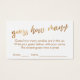 These subtle cards are appropriate for both baby and bridal showers. Using a modern handwritten script font, I created a graphic overlay that reads "guess how many". It's been embellished with a faux gold foil effect. Below that are the instructions for the game and another field for game players' guesses and names. The back was left blank. The background of these cards is editable white; feel free to change that to a different colour if you prefer. // 100 // Designed by Melody Watson for Paper Muserie.