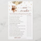 Purchase this editable card and enjoy high quality Guess Over or Under Game for your event! This is a card template, You can personalise the card, change the text as you wish! Baby Shower Activities! Gold and Brown Guessing game.