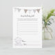 A fun game for the gender reveal party is the Guess that baby food game. This game features a silver grey and brown banner at top and a baby elephant at bottom. On the reverse is a baby elephant smiling with its trunk raised upward with templates.