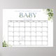 Guess The Arrival Date Greenery Blue Baby Shower Poster