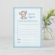 Adorable brown and blue baby bear for a boy's baby shower. Guess That Baby Food baby shower game. Blue blanket with blue stitched edge border for background. Templates provided on back.
