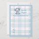 Adorable grey and blue baby bear for a boy's baby shower Guess That Baby Food baby shower game. Plaid blanket with blue stitched edge border for background. Templates provided on back.