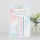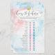 This baby shower game card features a script modern font on pink and blue watercolor background with gold crown and splashes, perfect for a surprise! Use this card for your unique gender reveal party!