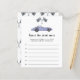 Race car theme baby shower invitation card featuring watercolor illustrations of a purple (violet) vintage car and black - white race flag. "Race on over for a baby shower."