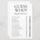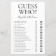This lovely modern Guess Who? bridal shower game sheet is perfect for any shower. This fun and easy game is sure to bring lots of laughter to any bridal shower. Simply give a sheet to each guest (don't forget the pens) and let the fun begin! You'll be amazed at how many things people know about the bride and groom. To make this game your own simply select Personalise this template and type in the bride's name and the groom's name.