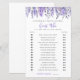 The design features an adorable watercolor lilac and lavender garden with stems in a variety of purple hues and fresh green leaves. The flowers run along the top, giving the game card a modern and whimsical touch. A mix of classic serif fonts and elegant script typography makes the game stylish yet easy to read.